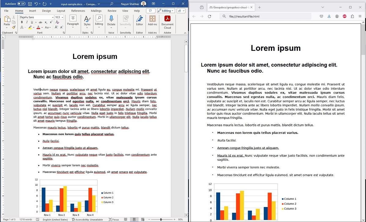 Imagen:- Una vista previa de la conversión de DOCX a HTML.